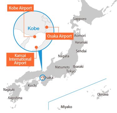 Access to the city center (Sannomiya) from both Kobe Airport and Shin-Kobe (Shinkansen station) is easy and quick.